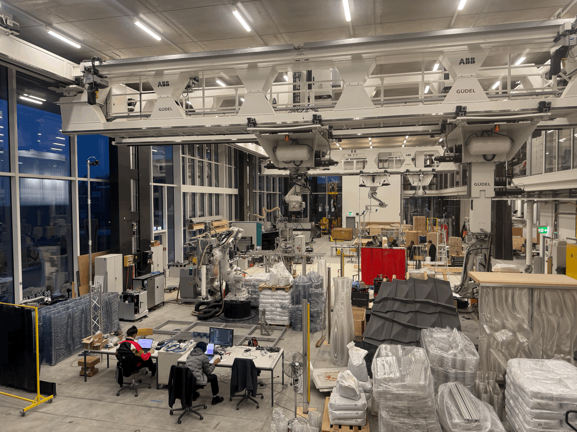 Our recent visit to ETH Zurich was nothing short of inspiring. Inside the 3D printing farm and the Robotic Fabrication Lab, we witnessed architecture and robotics merge in full scale. Four ABB robots moved seamlessly across an overhead gantry — an extraordinary display of precision and coordination that felt more like choreography than construction.