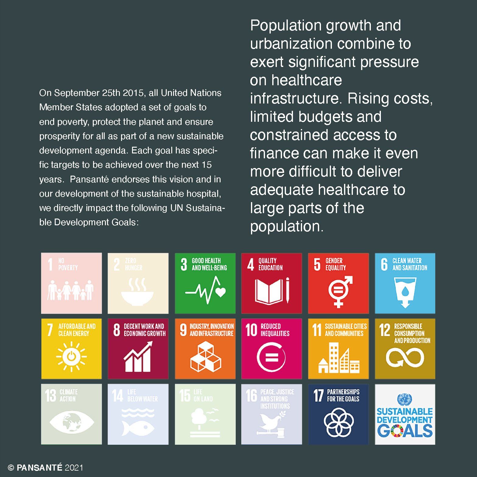 PANSANTÉ directly addresses 12 of the 17 SDGs