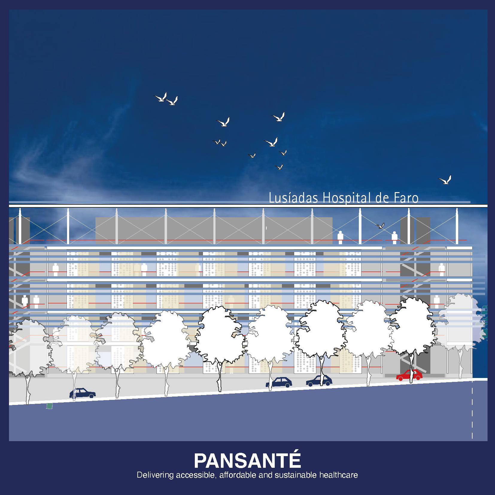 Together with Potthoff Engineers and Transsolar, we have presented a concept in Portugal that enables an energy-neutral operation of a hospital. The local conditions are good and we optimized the modular concept to the existing situation. By developing and validating innovative climate and energy concepts for high comfort and low energy buildings, we recognize that design is influenced by all aspects of environmental conditions. We collaboratively work with the client and other consultants from the beginning of the design process, using fundamental thermodynamics to consider each step. This generates a climate concept in which form, material, and mechanical systems are synergistic components of a well orchestrated climate control system, and conversely an environmental control strategy that is integral to the architectural concept with a minimum of energy and water use. Our design can be totally self sufficient (Net Zero) Our use of SROI (Sustainable Return On Investment) allows us to optimize the cost/benefit strategies used in our design.